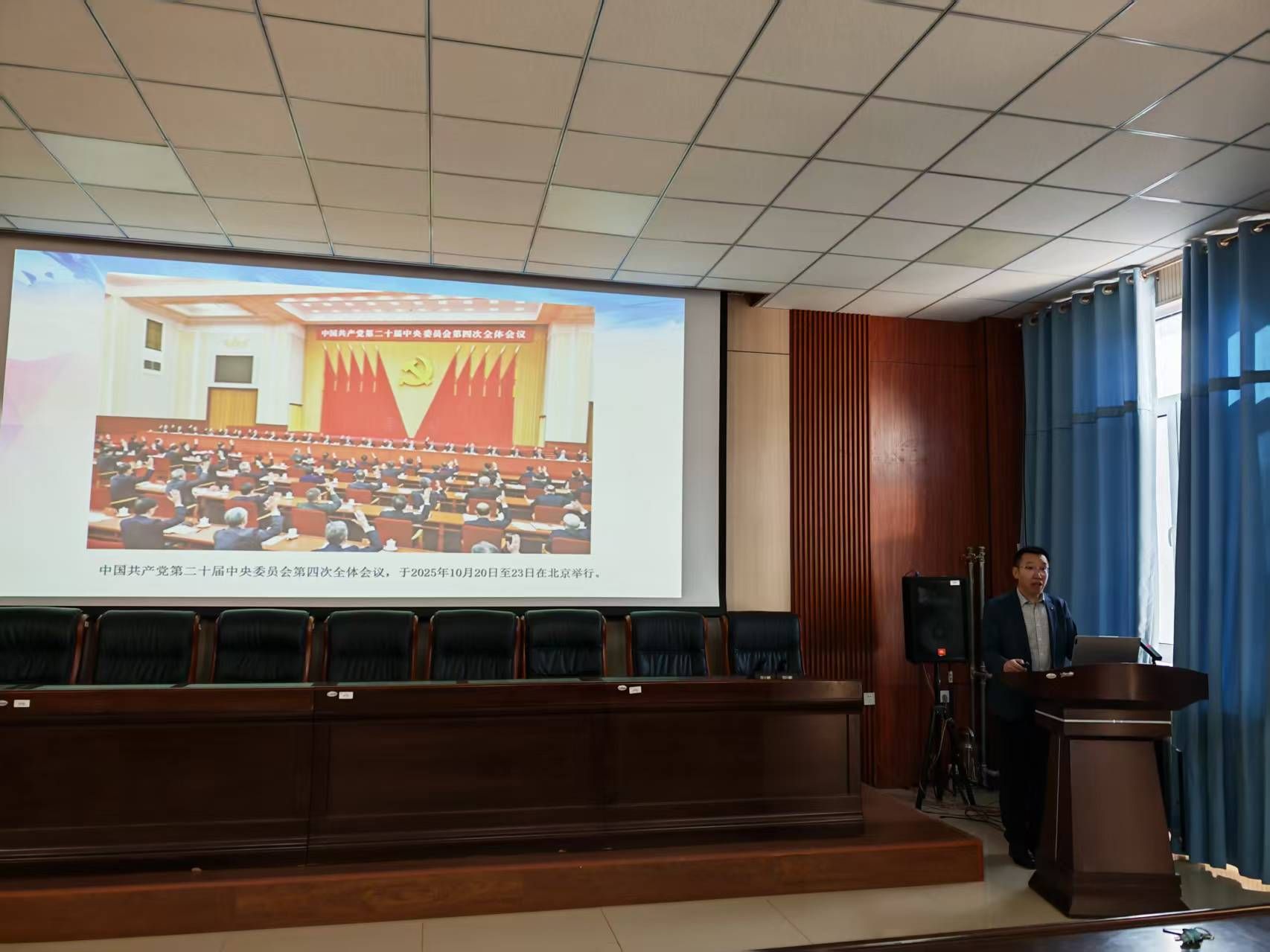 为深入学习宣传贯彻党的二十届四中全会精神,引导全院师生深刻领会全会精神的核心要义与实践要求,能源与环境学院积极响应学校安排,于2025年12月18日邀请马克思主义学院冯大彪教授在秋实新楼418会议室开展党的二十届四中全会精神专题宣讲。学院领导班子及全体教职工参加学习,学院党委副书记、副院长柴艳莎主持会议。
