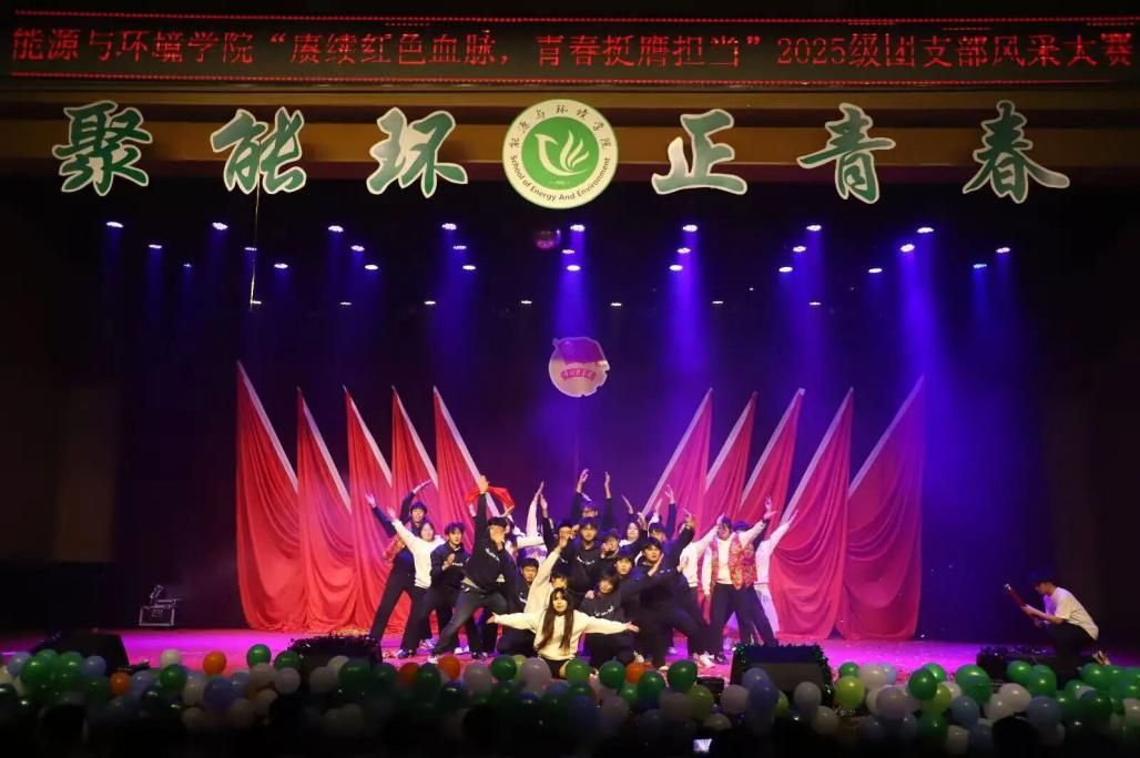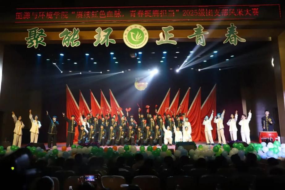 为展现新时代青年的精神风貌与责任担当,教育引导广大团员青年不断涵育道德情操,积淀文化底蕴,厚植爱国情怀,激发实现中华民族伟大复兴的奋斗精神,为谱写中国式现代化内蒙古新篇章贡献青春力量。近日,能源与环境学院在校音乐厅举办“赓续红色血脉,青春挺膺担当”2025级团支部风采大赛。