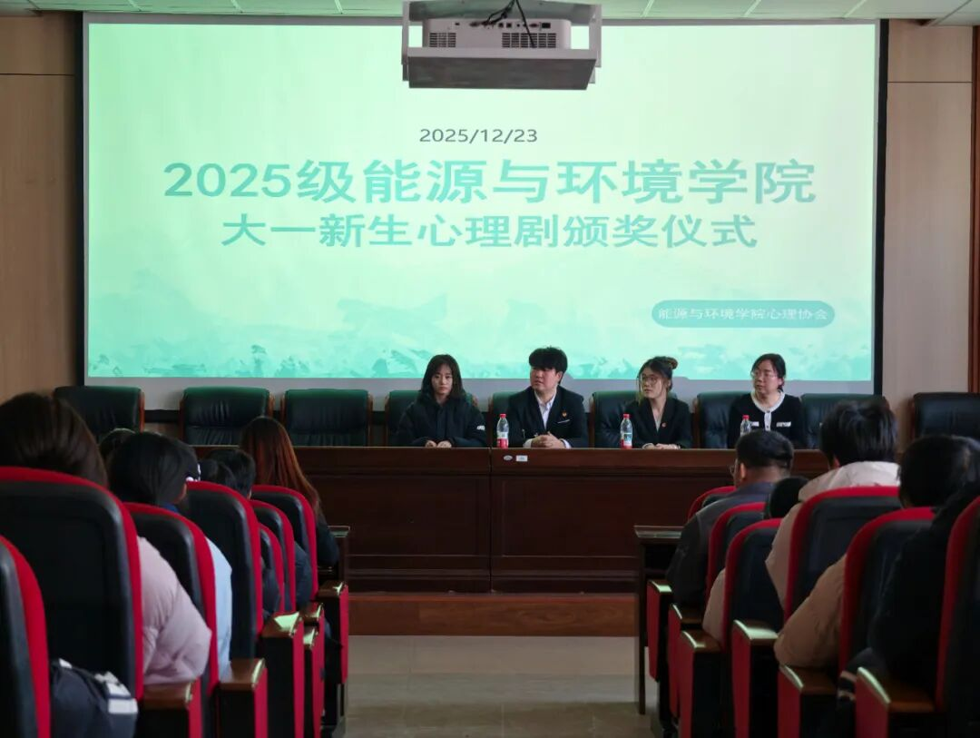 为引导同学们关注心理成长,鼓励同学们用镜头定格生活中的温暖与力量,12月23日,能源与环境学院举办的“镜头映心声,微光暖心灵”心理健康短视频大赛暨心理剧颁奖仪式顺利举行。学生工作办公室、心理健康协会指导教师以及心理健康协会全体学生干部共同出席本次活动。