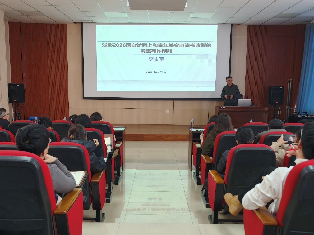 1月20日,大连理工大学李志军教授应邀进行学术交流,并以“浅谈2026年度国家自然科学基金面上项目与青年基金申请书的调整与写作策略”为题作专题讲座。报告由能源与环境学院副院长王志超教授主持,学院多位师生共同参加讲座。