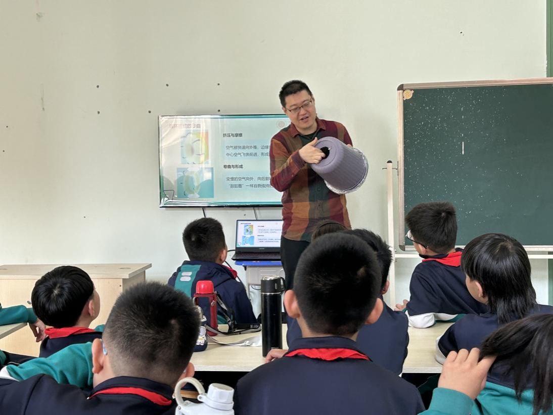 近日,学院与内蒙古科技大学实验小学科学素养提升项目开展第二次课程,本次课程由张大鹏老师主讲,以趣味实验“空气炮”为引,细致拆解了涡环诞生的四部曲——挤压与摩擦、中心与外围流速差、卷曲与旋转以及压强的稳定维持。